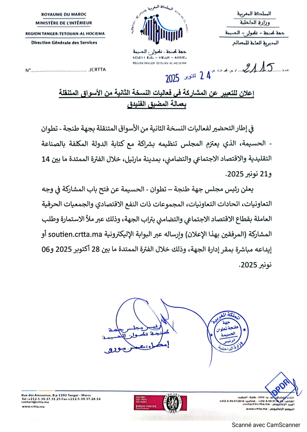 Le Conseil de la Région Tanger-Tétouan-Al Hoceïma a lancé une plateforme numérique afin de faciliter la réception des demandes de soutien dans les secteurs suivants :Sport - Culture - Économie sociale et solidaire ,Cela s'inscrit dans le cadre des conventions de partenariat conclues avec les secteurs concernés.