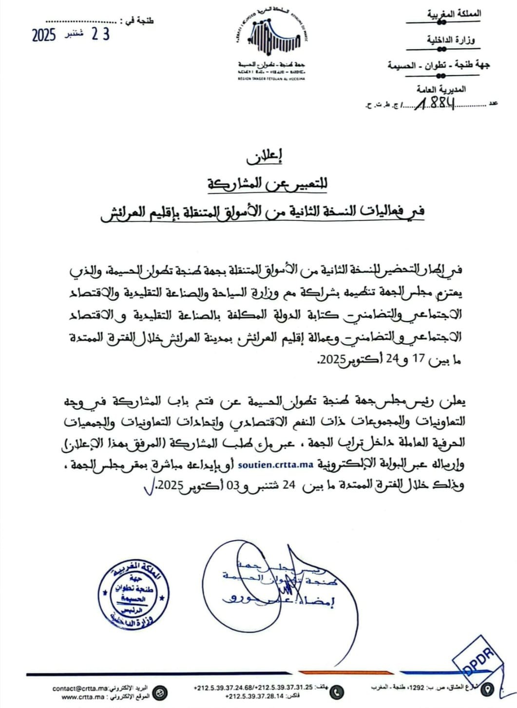 Le Conseil de la Région Tanger-Tétouan-Al Hoceïma a lancé une plateforme numérique afin de faciliter la réception des demandes de soutien dans les secteurs suivants :Sport - Culture - Économie sociale et solidaire ,Cela s'inscrit dans le cadre des conventions de partenariat conclues avec les secteurs concernés.